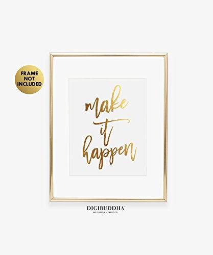 /// Make It Happen /// Beautiful classic hand lettering brush calligraphy gold foil art print - the perfect gold decor for the living room, dining room, office or bedroom. Modern, feminine and elegant.