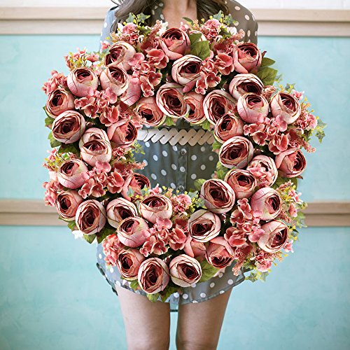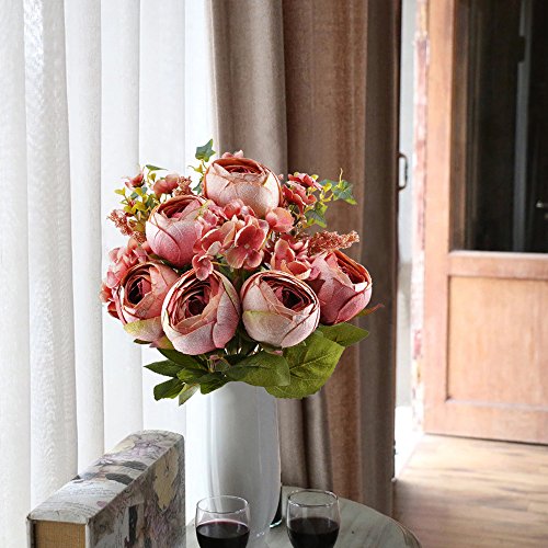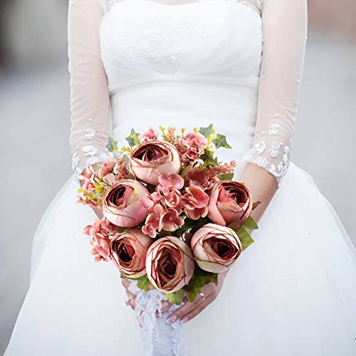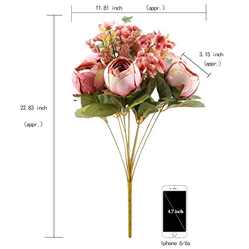 GTidea Fake Flowers Artificial Silk Peony Bundle Home Office Wedding Bridal Bouquet Table Centerpieces Arrangements Floral Arranging Decor Pink