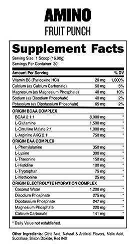 ORIGIN AMINO© provides one of the best, most complete, amino intra/post workout recovery drinks on the market, with branch chain amino acids, essential amino acids, and a detailed electrolyte hydration complex. The amino acid profiles within ORIGIN AMINO© work to be both anabolic and anticatabolic (building muscle and stopping muscle wasting). Addition electrolytes have been added to help maintain proper muscle hydration and function.Feature