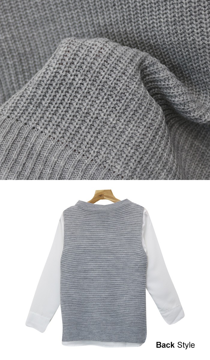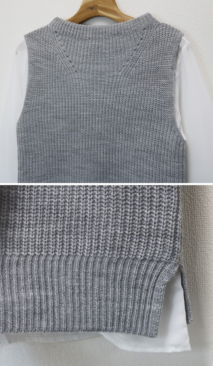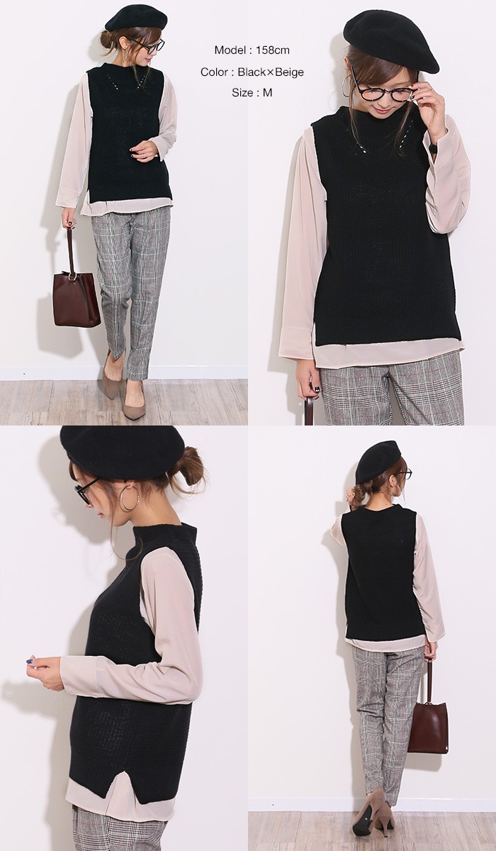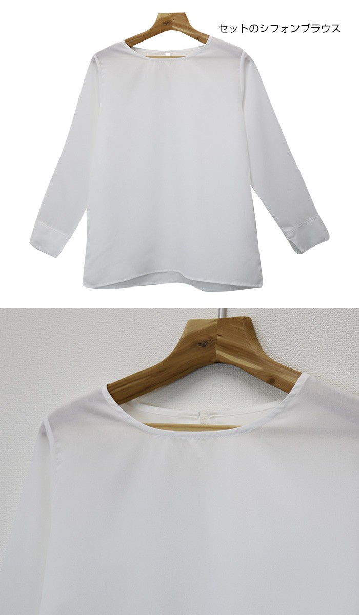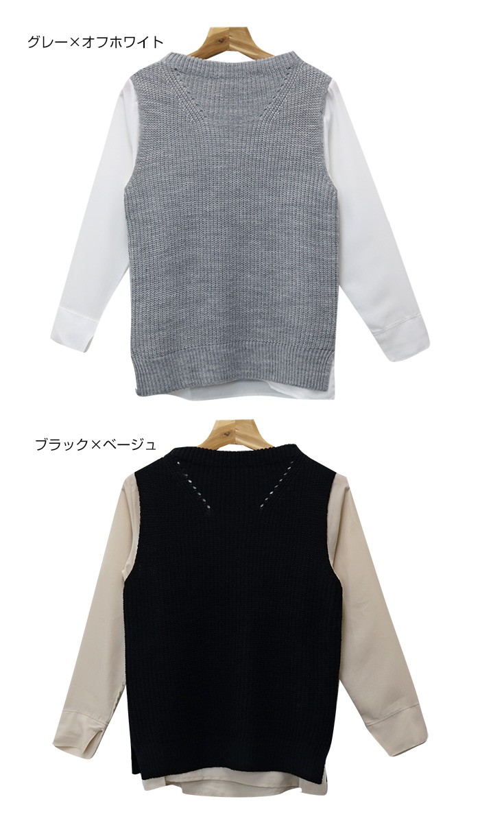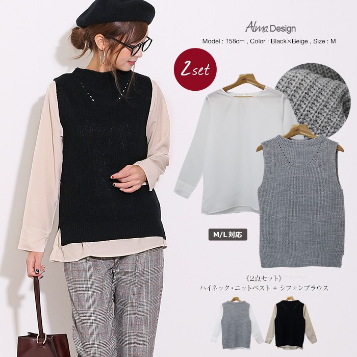 ざっくりとしたニットベストとシフォンブラウスを重ねて着られる2点セットアイテム!
