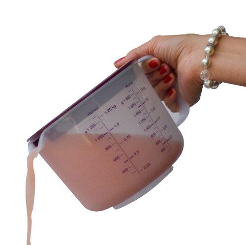 Features a removable Splatter Guard to eliminate making a countertop mess while mixing, while center seal allows for easy storage of leftovers.
