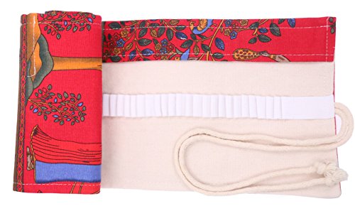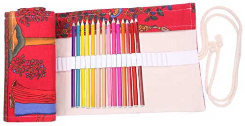 Canvas Pencil Wrap, Coideal Colored Pencils Roll Up Pouch Case Holder Set for Kids and Adults, Travel Drawing Coloring Pencil Roll Organizer for Artist(72 Holes, Happy Tree)