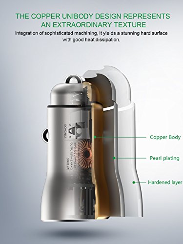 Copper Dual USB Car Charger Adapter from G.N., 3.6A/18W, Smart and Safe Charger for iPhone iPad Samsung Android Phones Tablets