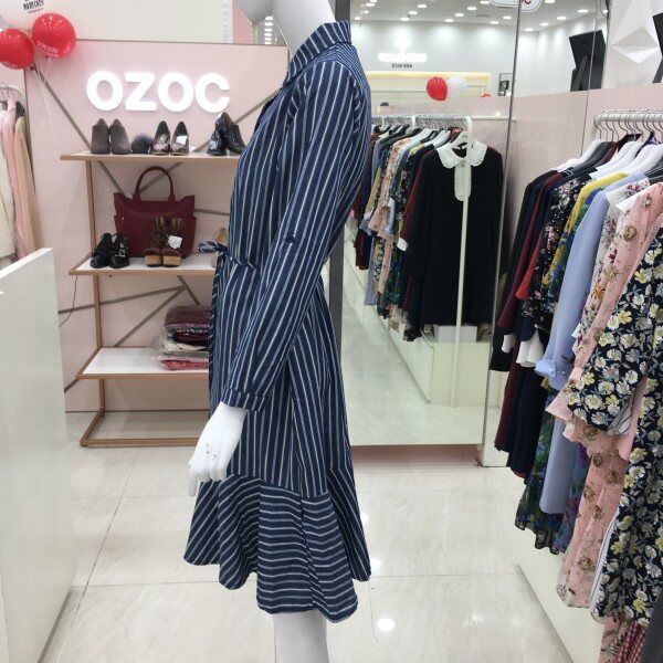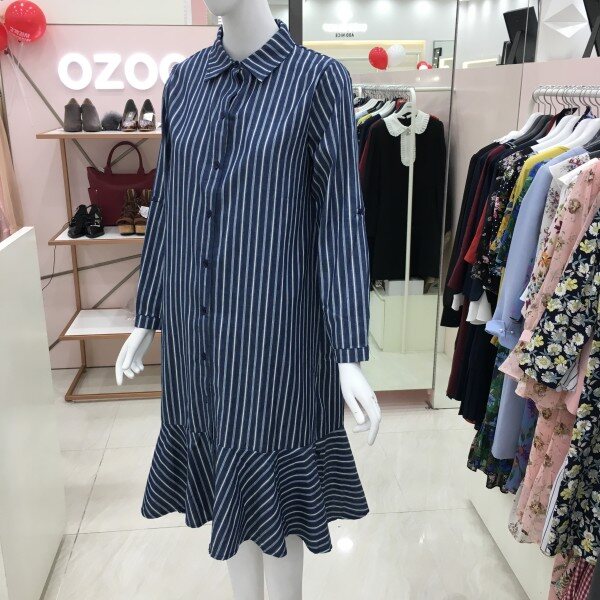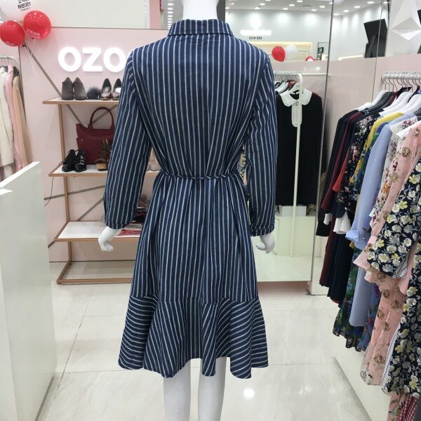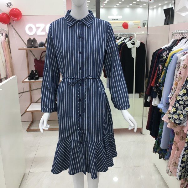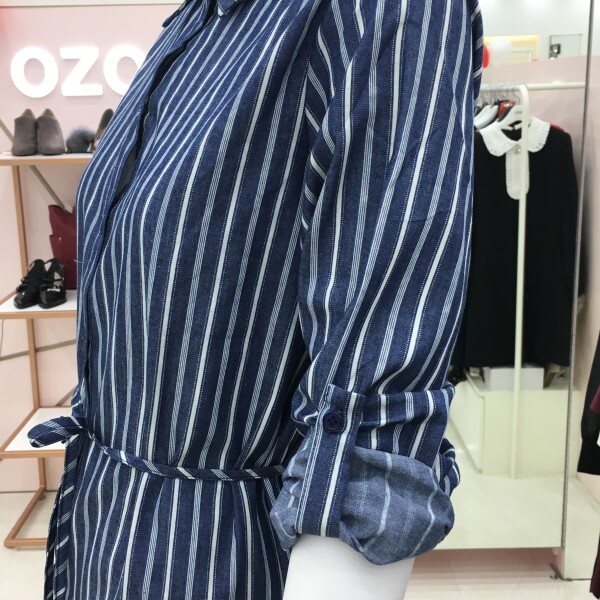인디고 컬러로 데님 소재의 느낌이 있는 스트라이프 셔츠 원피스입니다. 소매는 롤업하여 발랄한 느낌으로 착용해주셔도 좋습니다.