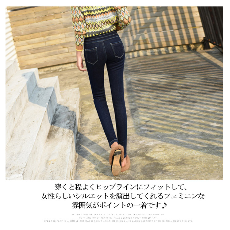 | デニムスキニーパンツが登場です★ しっかりしたデニム素材で着用を続けてもラインが崩れにくく、安見えしないのが嬉しいポイント♪ シンプルなすっきり見えるスキニーなのでブーツインはもちろん、パンプスやショートブーデイーと合わせても足元まで美脚になるように設計しました☆ | |