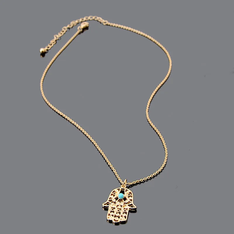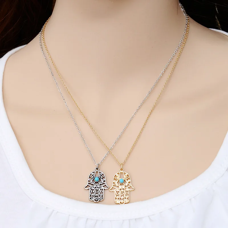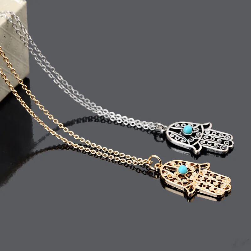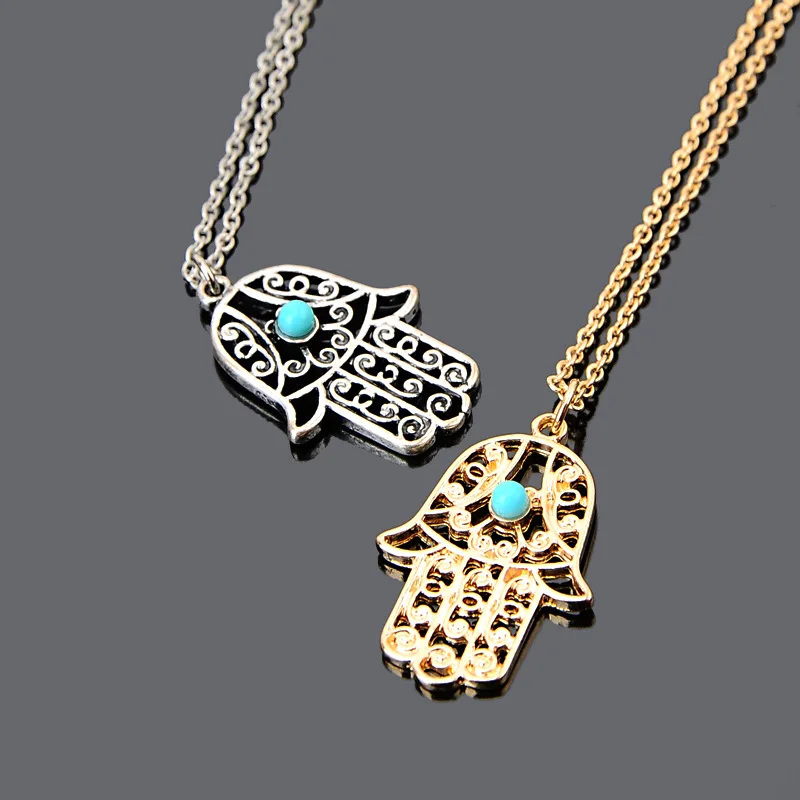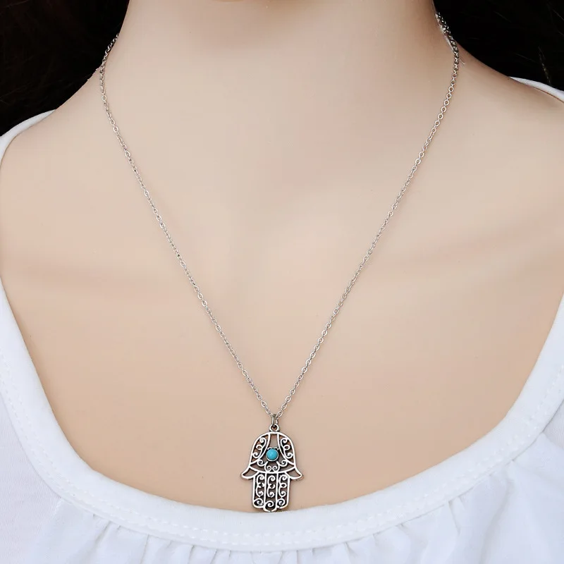 colgantes mujer:Hamsa Hand Turquoise Pendants Necklace