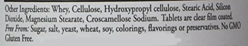 -. Feature : Serving Size - 1 tablet / Does Not Contain: Sugar, salt, yeast, wheat, soy, colorings, flavorings or preservatives, GM.