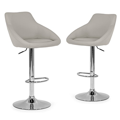 -. Title : Glamour Home Décor Set of 2 Alani Ashy Grey Adjustable Height Swivel Barstool in Faux Leather