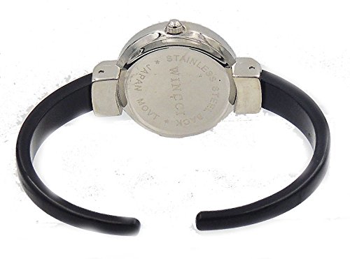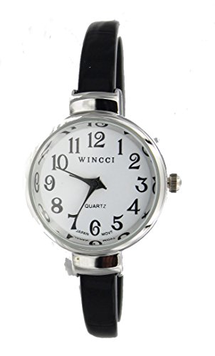Women's Classic Dainty Easy Read Black Enamel Bangle cuff Watch