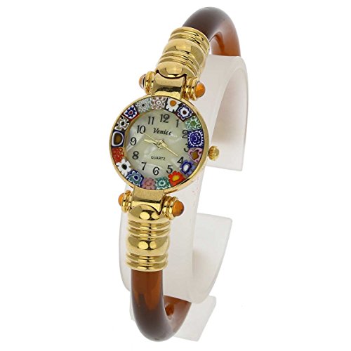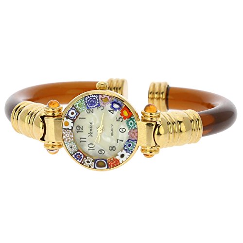 Murano Glass Millefiori Bangle Watch - Amber