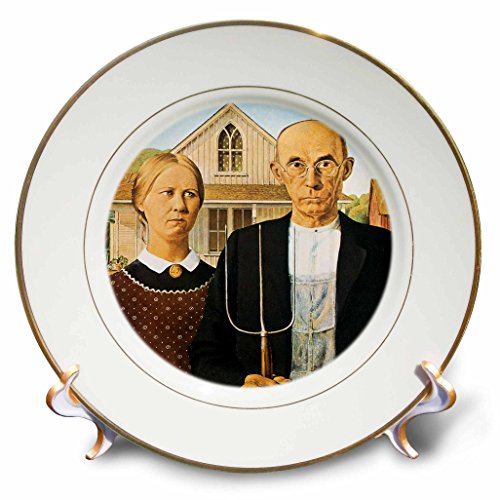 3dRose cp_130186_1 American Gothic by Grant Wood-Porcelain Plate, 8-Inch