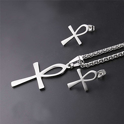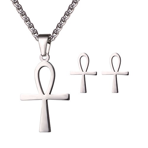-. Title : U7 Women Egptian Jewelry Stainless Steel Ankh Cross Pendant Necklace Earrings Set