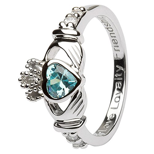 -. Feature : MARCH Birth Month Sterling Silver Claddagh Ring. / Made in IRELAND. Hallmarked in assay office in Dublin Castle. Authentic Irish. / "Love Loyalty Friendship" inscribed. / Comes with a beautiful ring box ready for gift giving. / Best Quality.