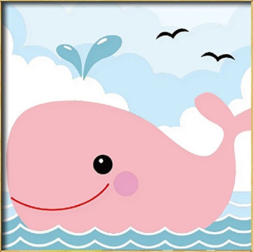 Diy oil painting, paint by number kits for kids - Pink small whale 8"X 8".