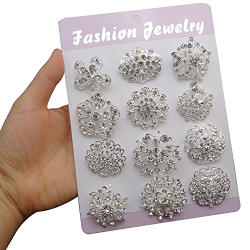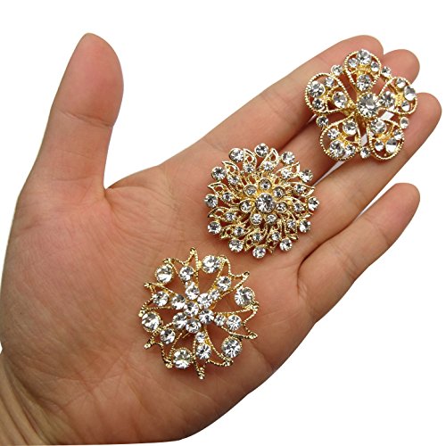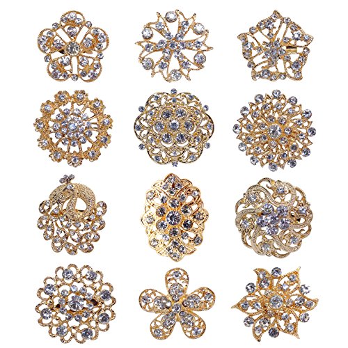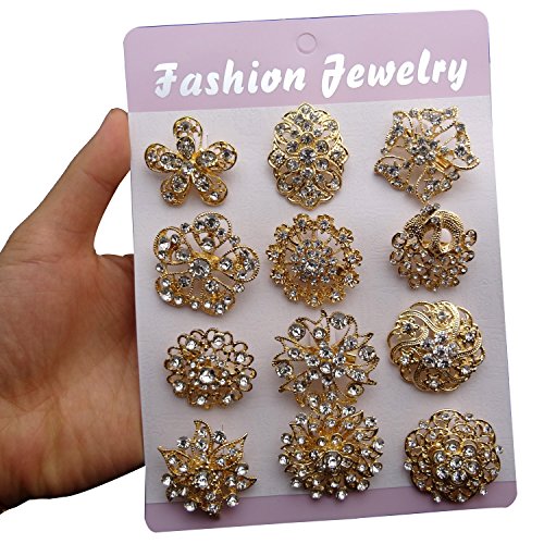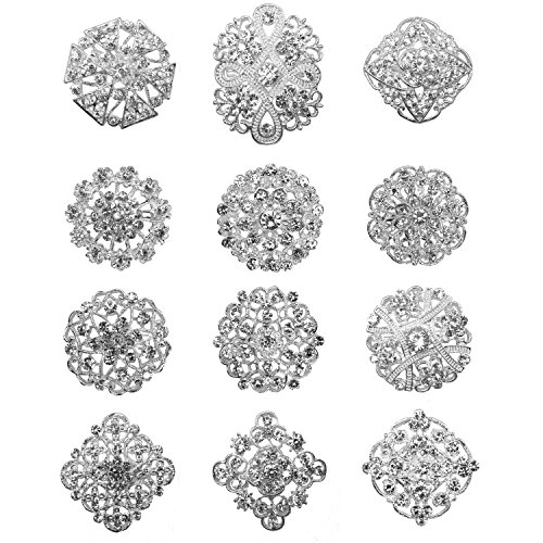 -. Feature : Material: alloy+ crystals / Quantity: 24pcs (24 designs) / Size: 3cm-3.5cm(1.18in-1.37in) / Color: silver/gold / Your best source for Silver/Gold Plated Crystal & Rhinestone Brooches. Great for adding a touch of creativity to your wedding bridesmaid's, flower girl's dresses, a stylish hat, a hair accent or even your wedding cake.