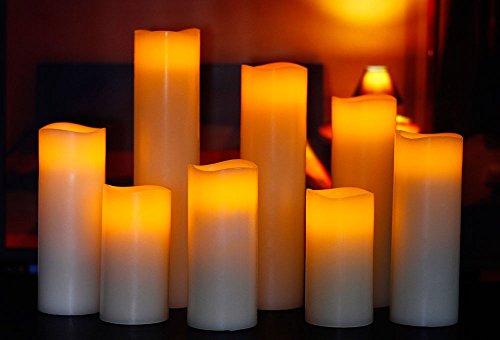 Ry-king 4" 5" 6" 7" 8" 9" Pillar Flickering Flameless LED Candles with 10-key Remote Timer, Set of 9