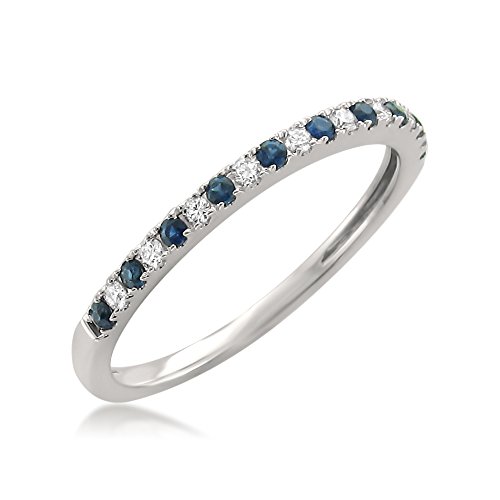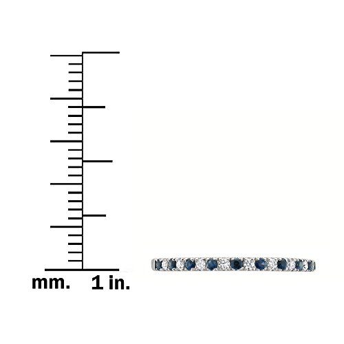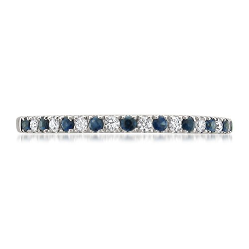 -. Title : 14k White Gold Round Diamond & Blue Sapphire Micro-Pave Bridal Wedding Band Ring (1/4 cttw, H-I, VS2-SI1)