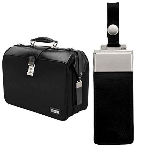 -. Feature : Nostalgic computer/doctor bag with locking closure / Exterior back zip pocket, zippered, padded laptop compartment / Interior mesh pocket, multiple interior accessory holders / Paded carry handle, removable and adjustable padded shoulder strap / Matching lage tag included.