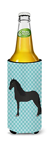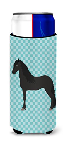 Caroline's Treasures BB8089MUK Friesian Horse Blue Check Decorative Hugger, Slim Can, Multicolor