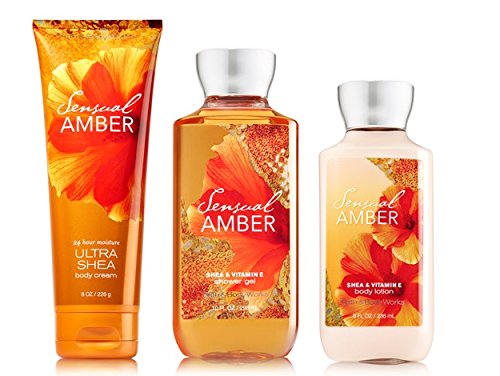 -. Binding : Misc. -. Brand : Roomidea -. EAN : 0885398195619 -. Feature : The scent of lotus petals & golden amber surrounded by creamy sandalwood / Sensual Amber Gift Ultra Shea Body Cream, Body Lotion and Shower Gel / Full Size -. IsAdultProduct : 0 -. ProductGroup : Beauty -. ProductTypeName : BEAUTY -. Title : Bath & Body Works Sensual Amber Gift Set -. UPC : 885398195619