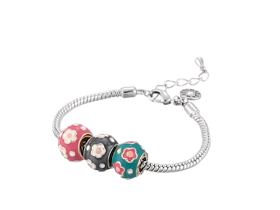 Little Miss Twin Stars Gold-Plated Multicolored Enamel 3 Slides Flowers Rhodium Bracelet