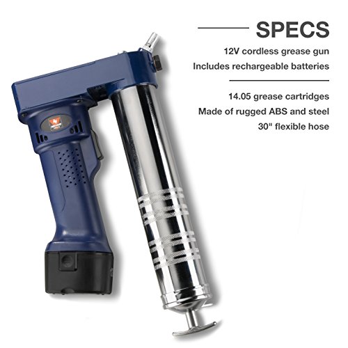 Neiko 12000A 12V Cordless Grease Gun, 6500 PSI | Dual Ni-Cd Rechargeable Batteries Included