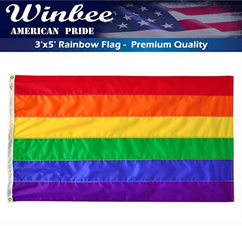 ❤ WINBEE BRAND: The American Gay Lesbian Flag 3x5 is using specially unique technical patent, Dry Fast, Resist Sun, Chemical Deterioration and Fade Resistant. Premium LGBT Rainbow US Flag by WINBEE