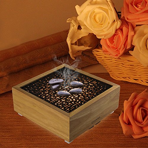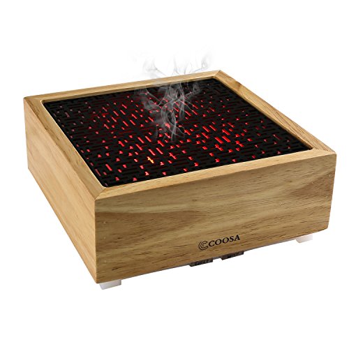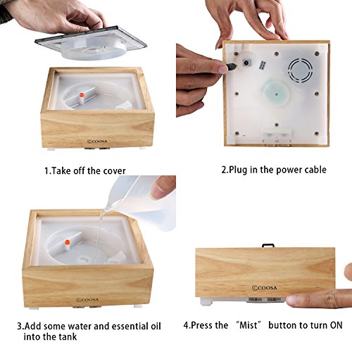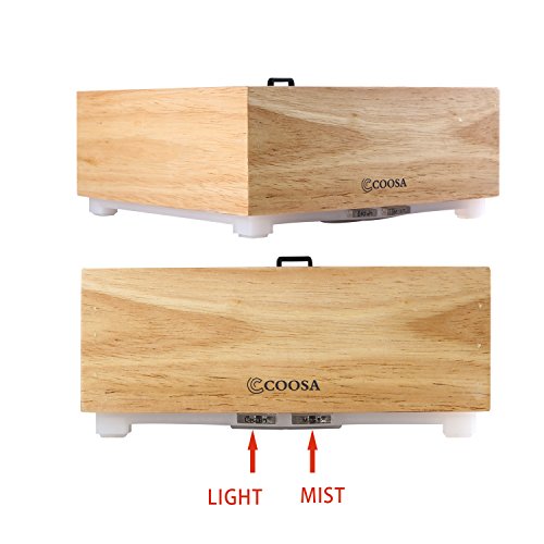 COOSA Wooden Square Design 90ml Essential Oil Aroma Diffuser Ultrasonic Cool Mist Air Humidifier with Colorful Light Adjustable Mist Great for Home, Yoga, Office & Spa (Pale Wooden)