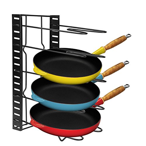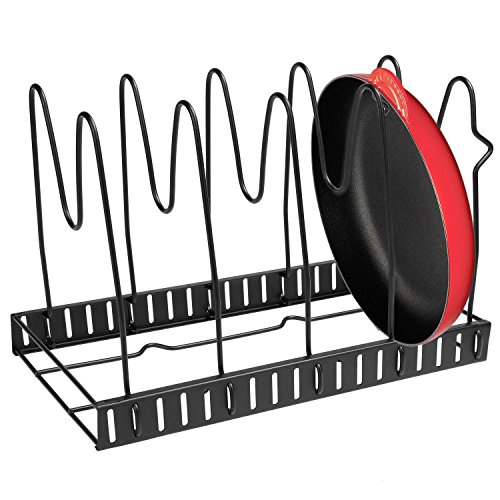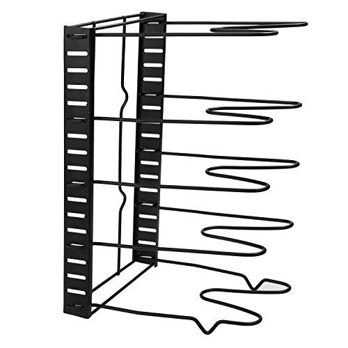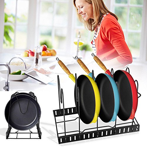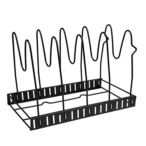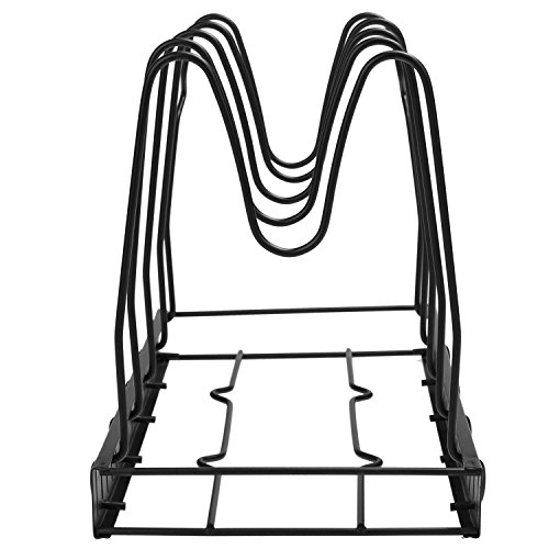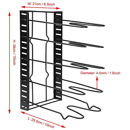 Specifications100% Brand New. Material: Metal Color: Black Size: 38 x 20cm/14.8 x 7.8inch Steps for usage: 1.Remove all of the packing material from the organizer rack. 2.Separate the shelves from the base. 3.Insert the ends of the shelf into the slots of the base by squeezing the sides, Place the shelves apart according to the desired pan/lid size. 4.Make sure to install the shelf with ""feet"" on the end of the base. 5.The rack is designed to hold 5 pans or lids. 6.You can either lay it flat or place the rack upringht(best for base cabinet or pantry). 7.If placing upright, mske sure that the bottom shelf is suing the slot closest to the edge and has to be in contact with the surface. See Diagram. Cleaning: To Clean, simply wipe with damp cloth. Package Content: 1 x Cookware Rack Note: Due to the difference between different monitors, the picture may not reflect the actual color of the item. 0