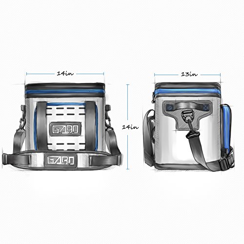 - -Perfect size: This medium size cooler holds up to 24 cans of your favorite beverage plus ice. It measures 14 × 13 × 14 inch. Use front and rear zipper bags for dry items.