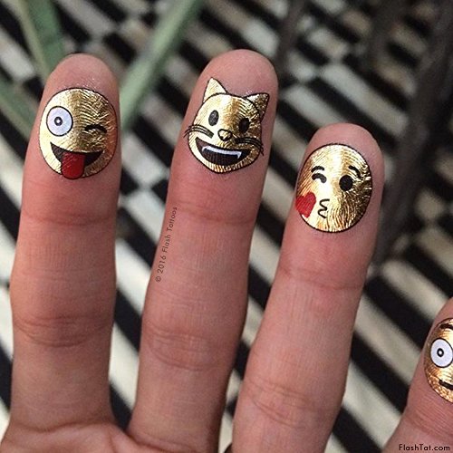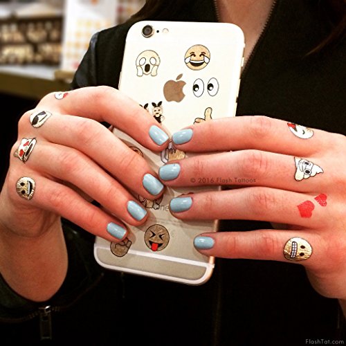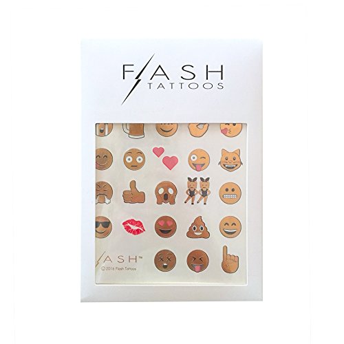 Presenting Emojis by Flash Tattoos - a fun collection of temporary tattoos featuring popular emojis for all you social media-obsessed babes. Inspired by our love of everyone's favorite assortment of smileys, this collection is the perfect way to take your social media stardom offline. Shimmer, shine, and share your pack with friends while you're at the beach, pool, parties, festivals... anywhere you and your skin might be seen having fun. Shine on, and be the queen of your social scene...no wi-fi required. All Flash Tattoos pass safety standards for the cosmetic and toy product industries. Do not apply to sensitive skin, near eyes, or if you are allergic to adhesives.Feature