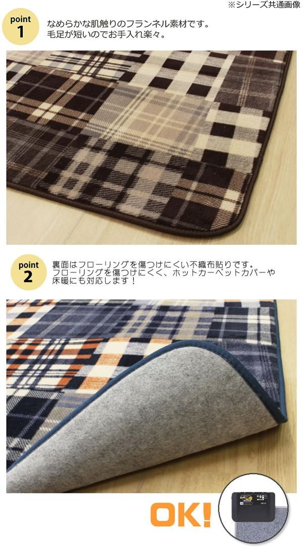 | なめらかな肌触りのフランネルを使用したラグです。カジュアルなデザインでどんな部屋にもマッチします。ホットカーペットカバーとしてもご使用いただけます。 |
