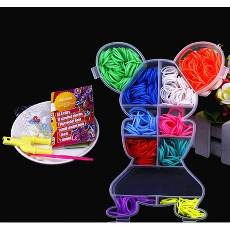 Packing:400pcs Rubber Bands + 2 Hooks +12 S Buckle+1 Knit Tool