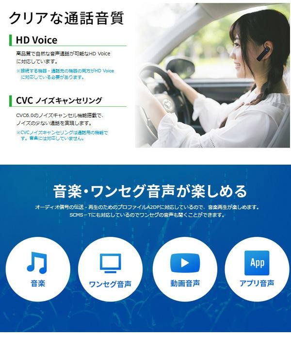 通話・音楽再生が約10時間以上と、長時間の使用が可能です。右・左耳両対応。A2DP(オーディオ)プロファイルとSCMS-Tに対応しているので音楽やワンセグも楽しめます。