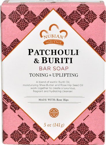(2) Bars - Nubian Heritage Bar Soap - Patchouli and Buriti - 5 oz Nubian Heritage's unique blend of Buriti Oil, moisturizing Shea Butter and Rose Hip Seed Oil in our sustainable soap base provides a fragrant, soothing and hydrating cleanser. Sweet, spicy, aphrodisiacal Patchouli essential oil is known for its beneficial effect on oily or maturing skin and hair. Relaxing, uplifting and soothing, Patchouli complements the Amazonian beauty secret, Buriti oil. The Buriti palm, known as "the tree of life", provides food as well as a traditional treatment for skin ailments. Buriti oil's high Beta-carotene, Vitamin E and Vitamin C content works with essential fatty acids to support collagen production and anti-oxidants while hydrating and comforting the skin.Feature