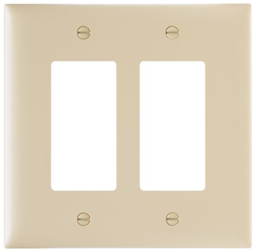 Trade Master jumbo wall plate with two Decorator openings, two gang, White. Molded of rugged, practically indestructible self extinguishing nylon. Preferred for hospital, industrial, institutional and other high use applications.
