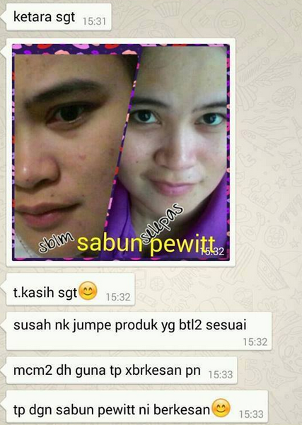 dan kami turut mndapat respons yg banyak mengatakan pewitt soap sgt2 efektif!!