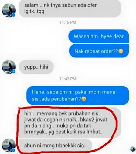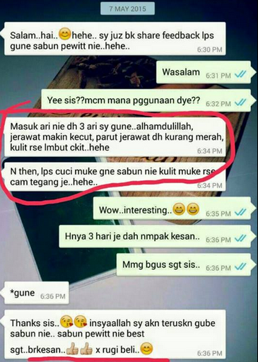 "Tak percaya sis, guna produk macam2 dah, mahal pulak tu….guna sabun ni masalah saya selesai"