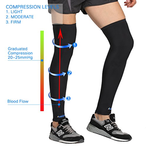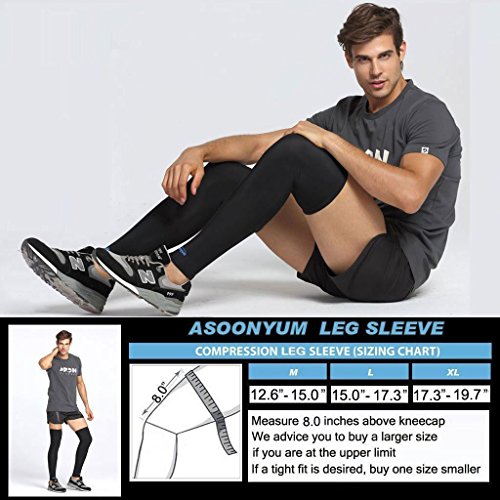Leg Compression Sleeve (1 Pair) Women Men Youth Basketball - Sports Footless Calf Compression Socks Knee Brace Support Helps Shin Splints, Arthritis, Blood Circulation, Muscles - Black by ASOONYUM