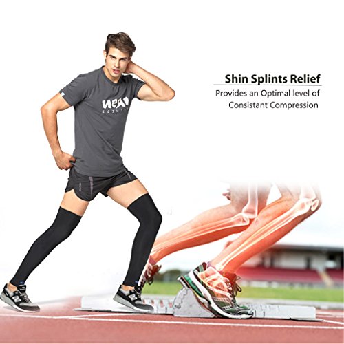 ① How to prevent shin splints - Leg sleeves knee Brace support Help you get relief from shin splints symptoms pain and provide muscle stabilization, reduces muscle vibration and fatigue.