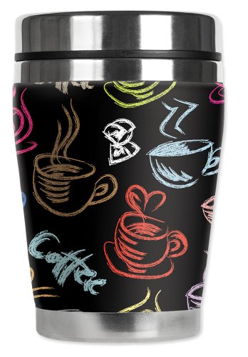 Mugzie Coffee Tumblers "Mini" Travel Mug with Insulated Wetsuit Cover, 12 oz, Black