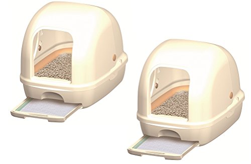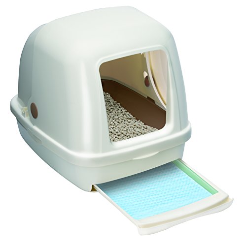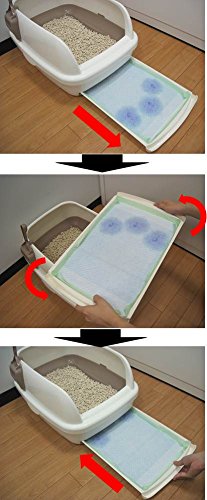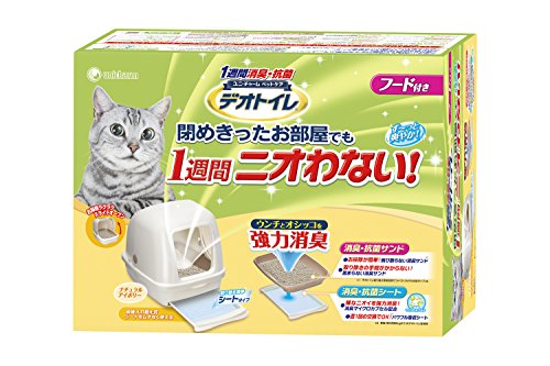 お手入れカンタン!閉めきったお部屋でもニオわない、猫用のシステムトイレ。約1ヶ月交換不要※の「消臭サンド」はオシッコをサッと下層に通過させ、オシッコが固まらないので、取り除きがいらずお手入れカンタン。約1週間交換不要※の「消臭・抗菌シート」が、1週間分の尿をしっかり吸収し、抗菌剤がニオイを強力に抑えます。ハーフカバー・フード付き本体トイレは前後入れ替え式引き出しで、シート交換時の前後入れ替えも可能。フード付き本体トイレはスライドオープンタイプでフードの開閉がカンタン。