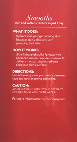 Olay Regenerist Regenerating Serum's fast penetrating formula is a silky, ultra-lightweight gel serum that regenerates surface cells while restoring skin’s elasticity with plumping hydration. Infused with Olay's Amino-Peptide Complex II, this formula is designed to deliver moisturizing ingredients 10 layers deep into the skin surface. After just 4 weeks, skin’s appearance is firmer. The appearance of fine lines and wrinkles are also improved. Non-greasy and fast-absorbing, it’s the perfect addition to your everyday beauty routine for hydration to achieve firmer, younger-looking skin.Feature