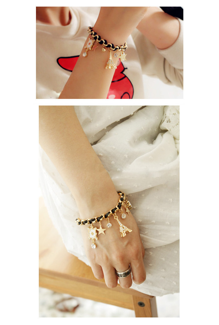 Tower pentagram multilayer bracelet (light gold)