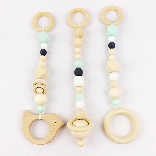 -. Binding : Toy -. Brand : HAO JIE -. EAN : 0707454728572 -. Feature : 100% Organic Beech Wood Rings/Beads, it can also be used to chew while playing. / Wooden ring is perfect for toddler easy to grip. / There are many shapes can be selected,provide visual impact for your child. / Clean the teether is with warm soapy water then let it air dry. / Babies should always be supervised while playing with adult and be never left alone.If the products was damaged, discard immediately as this may become a potential choking hazard. -. IsAdultProduct : 0 -. Label : HAO JIE -. Manufacturer : HAO JIE -. ProductGroup : Toy -. ProductTypeName : TOYS_AND_GAMES -. Publisher : HAO JIE -. Studio : HAO JIE -. Title : 3pcs Baby Play Gym Toys Wood Ring Baby Wood Beads Chewable Rattle Silicone Teehing Baby Shower Gift Wooden Teether -. UPC : 707454728572