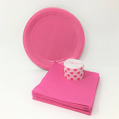 -. Feature : Hot Pink Party Supplies Bundle for 16 Guests, 3 Items: / 16 Count Hot Pink Disposable Paper Luncheon Plates, 9 Inches / 16 Count Hot Pink Disposable Paper Luncheon Napkins, 6.5 Inches Square / 1 Crepe Paper Streamer Decoration (Hot Pink Polka Dots on a White Background), 30 ft. x 1.875 in. Flame Resistant. / Makes Party Decorating and Clean Up a Breeze!