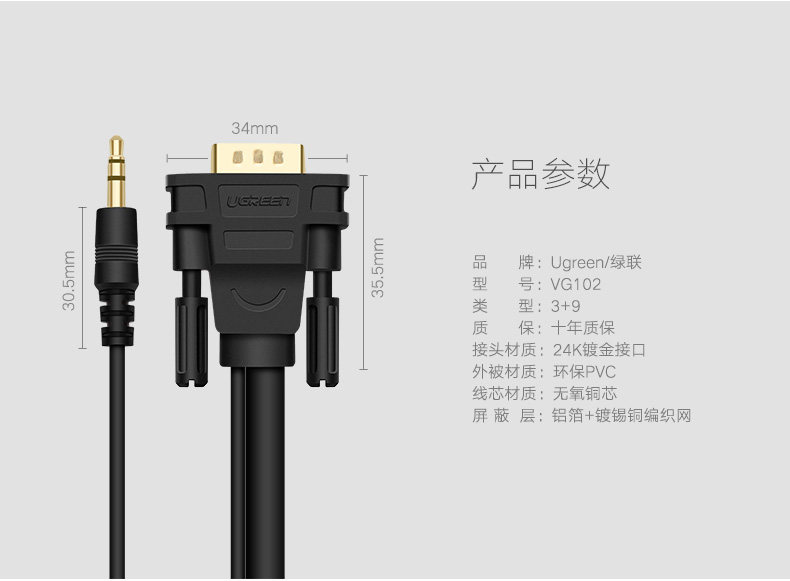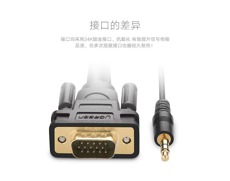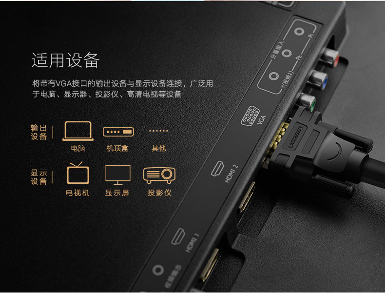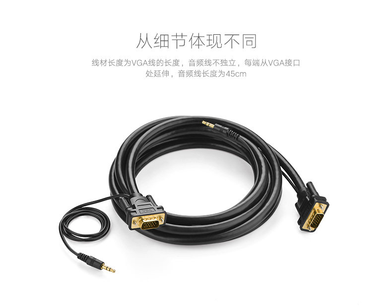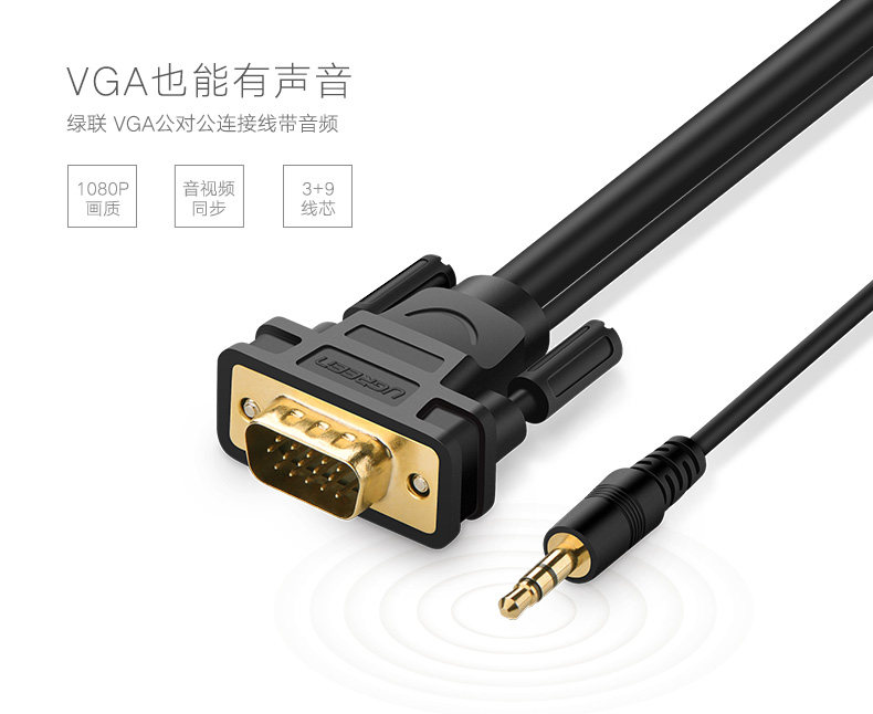 绿联 VGA线带音频电脑电视连接线 笔记本接电视vga3+9高清连接线