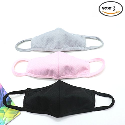 -. Title : 3PCS Anti-dust Cotton Mouth Face Masks For Breathe Healthy Filters Dust, Pollen, Allergens, Flu Germs ,Black & Pink & Gray