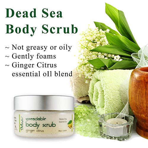 Delúvia Spreadable Body Scrub is a non-oily, creamy scrub that exfoliates, moisturizes and cleanses the skin leaving it silky and smooth. Enriched with Dead Sea minerals, natural oils and plant extracts that soften the skin and provide the skin with nutrients to keep it healthy and youthful looking. Enriched with our Ginger Citrus essential oil blend.