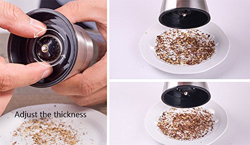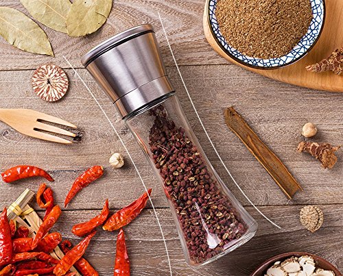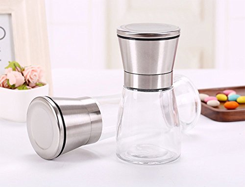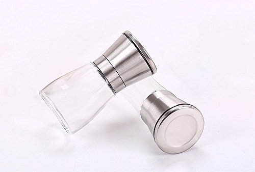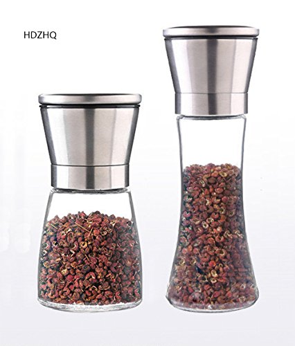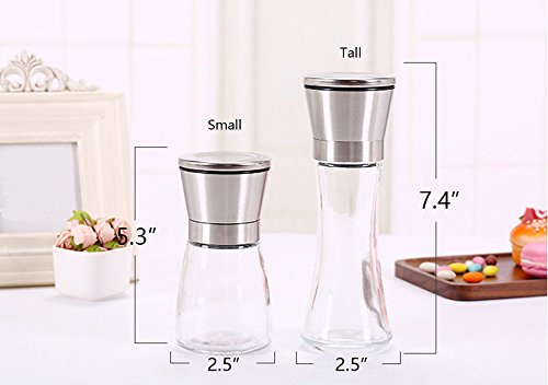 HDZHQ Salt and Pepper Grinder Set ,Top Quality, Easy To Use Salt And Pepper Mills!Salt and Pepper Grinder Set of 2, Large Capacity, Stainless Steel Top (1, Two Small bottles)